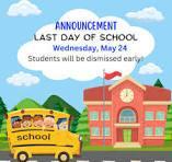 Early Release/Last Day of School is Friday, May 22
